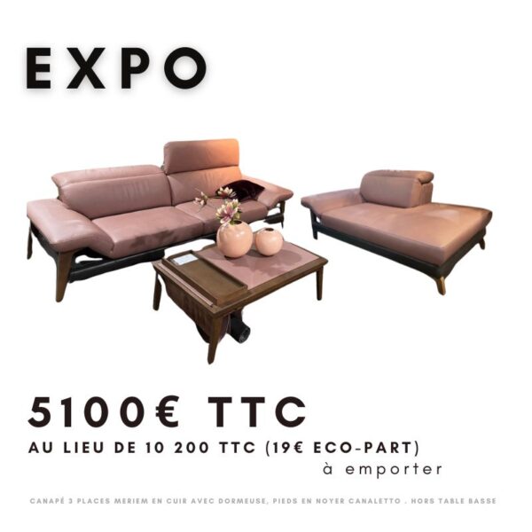 Canapé 3 places Large Meriem en cuir avec pieds en noyer Canaletto – Modèle d’exposition disponible immédiatement