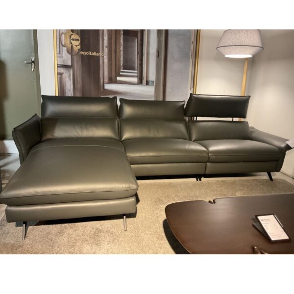 Le canapé Pullman avec relax électrique à gauche et dormeuse à droite combine confort et design contemporain. Profitez d’un soutien optimal grâce à sa structure en bois massif, sa suspension à ressorts et son rembourrage ergonomique, le tout revêtu d’un cuir de vachette haut de gamme.